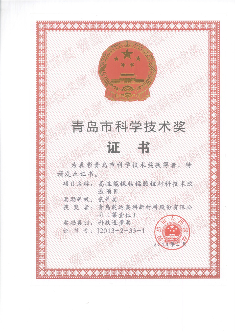 青島市科學(xué)技術(shù)二等獎(jiǎng)