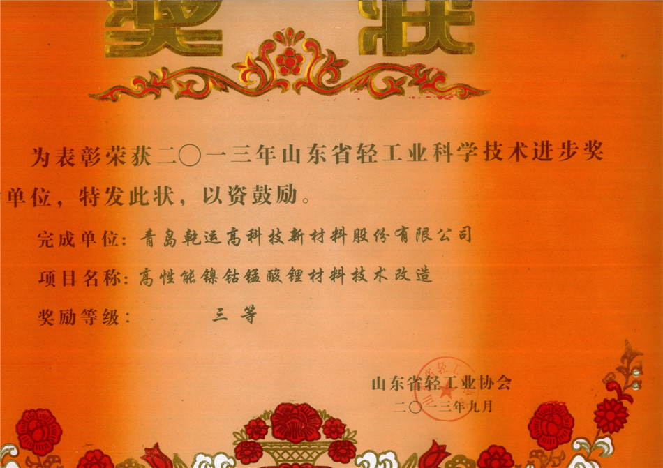 山東省輕工業(yè)科學(xué)技術(shù)進(jìn)步獎(jiǎng)三等獎(jiǎng)