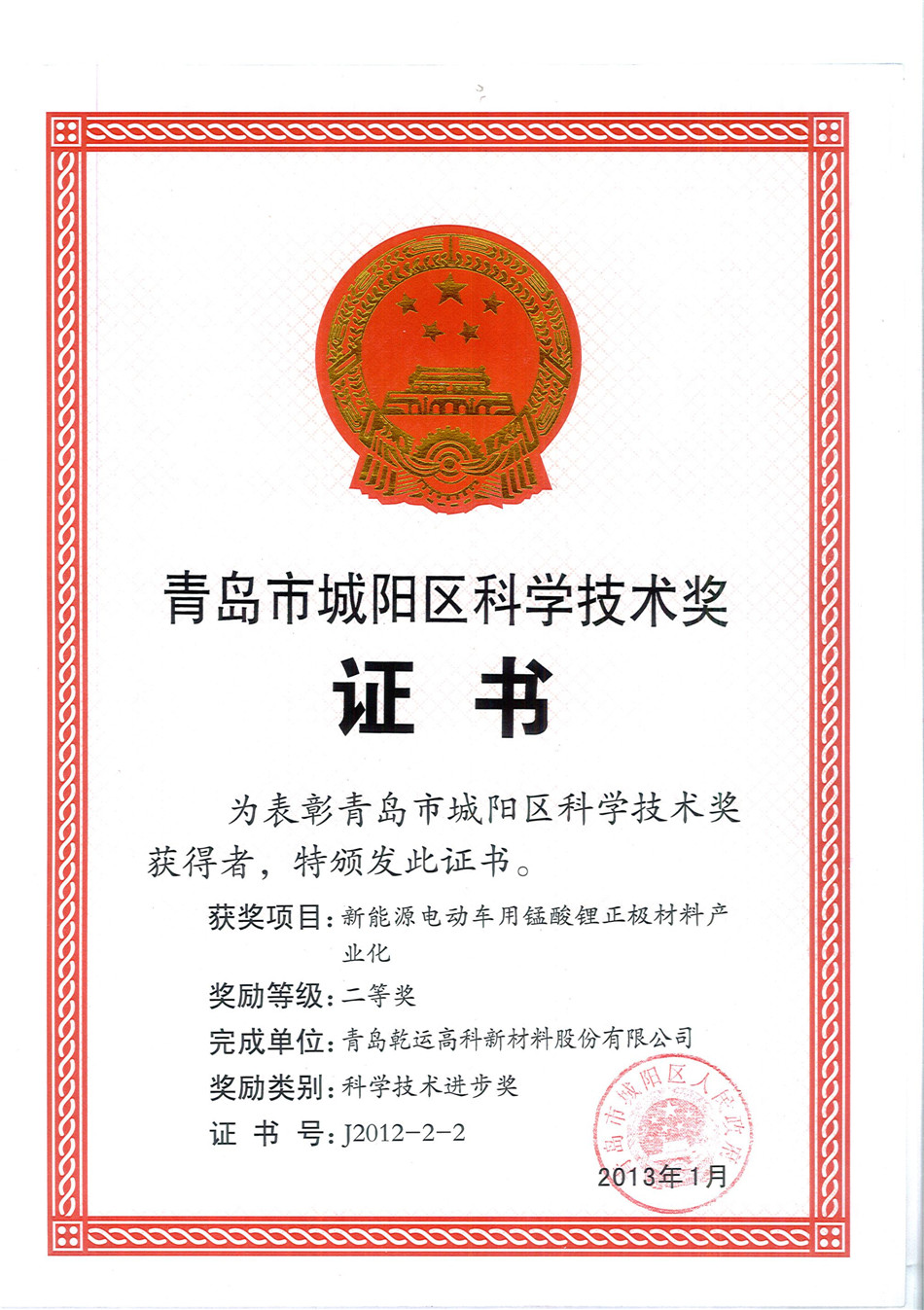 城陽區(qū)科學(xué)技術(shù)二等獎(jiǎng)