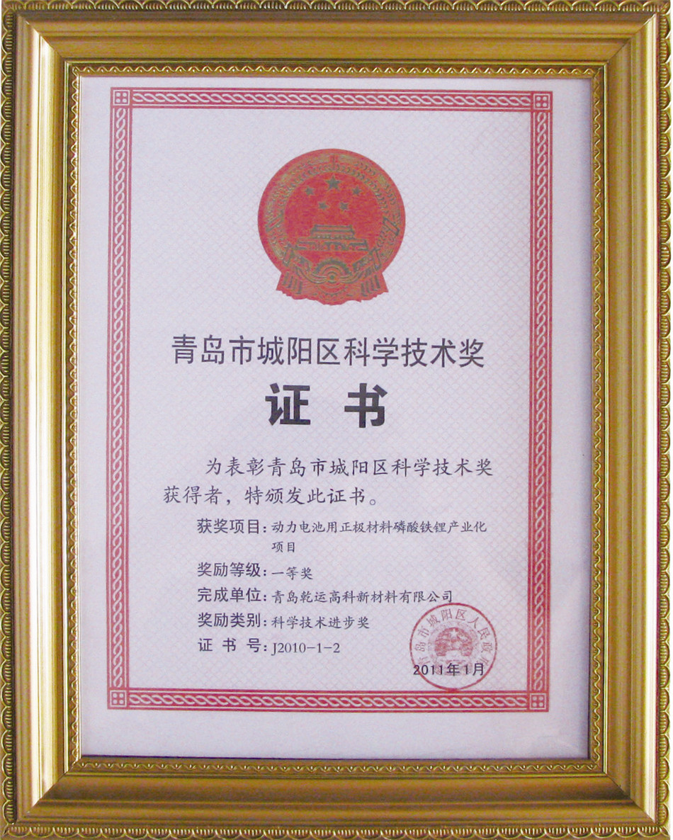 城陽區(qū)科學(xué)技術(shù)一等獎(jiǎng)