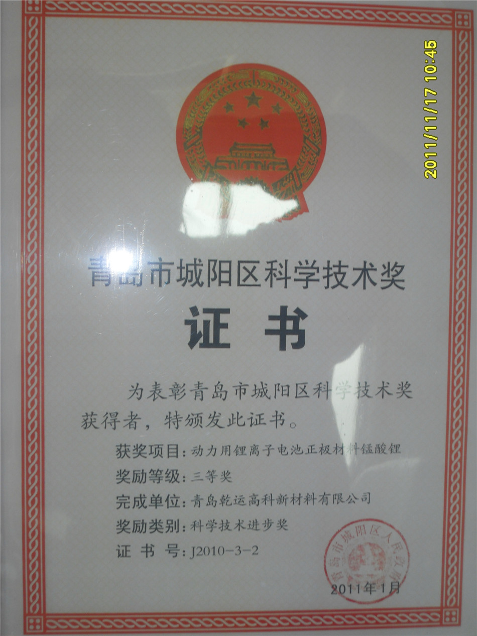 城陽區(qū)科學(xué)技術(shù)三等獎(jiǎng)