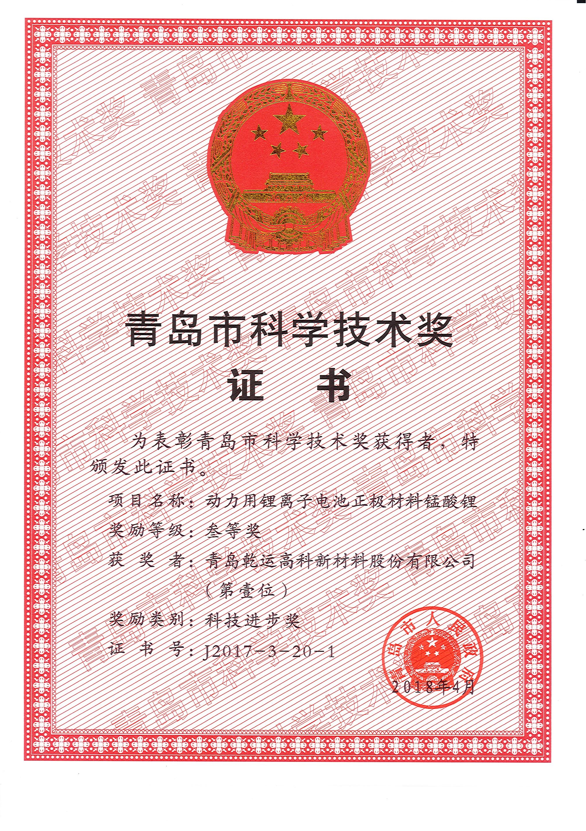 青島市科技進(jìn)步獎(jiǎng)三等獎(jiǎng)
